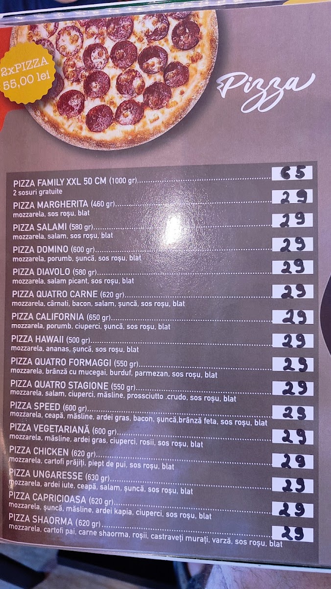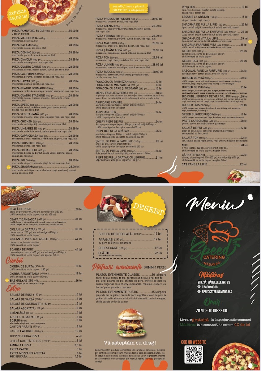 Speed Catering, nestled in the serene locale of Str. Sătmărel 28, Mădăras, Romania, offers a fast food experience that’s both swift and satisfying. Their menu shines with expertly crafted pizzas, praised for their delicious flavors and quick preparation—ready in just five minutes. Beyond pizza, their diverse selection of dishes is prepared fresh within 15-20 minutes, balancing quality and speed perfectly.
